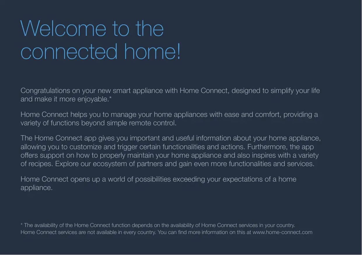 Home Connect services are not available in every country. You can find more information on this at www.home-connect.com
