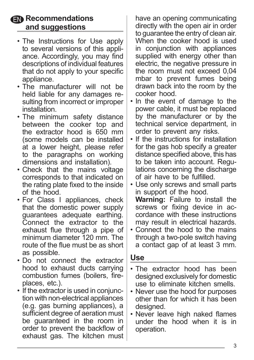 Ne pas relier la hotte aspirante aux conduits de cheminée qui ache- minent les fumées de combustion
