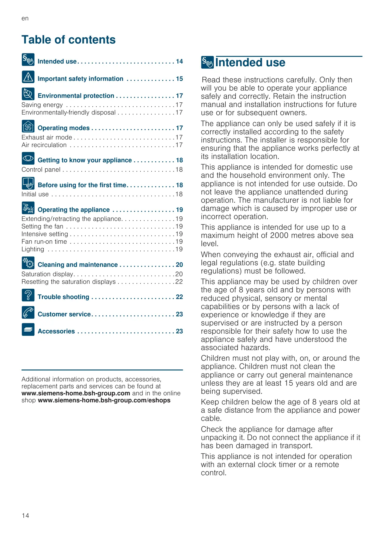 Additional information on products, accessories, replacement parts and services can be found at www.siemens-home.bsh-group.com and in the online shop www.siemens-home.bsh-group.com/eshops