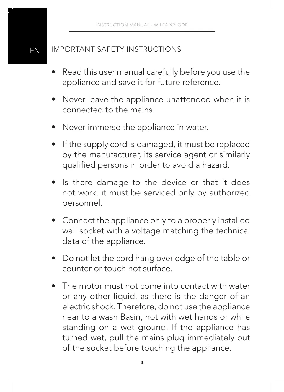 INSTRUCTION MANUAL · WILFA XPLODE
