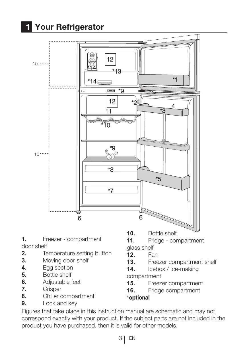 • Never use the parts on your refrigerator such as the door as a means of support or step. EN
