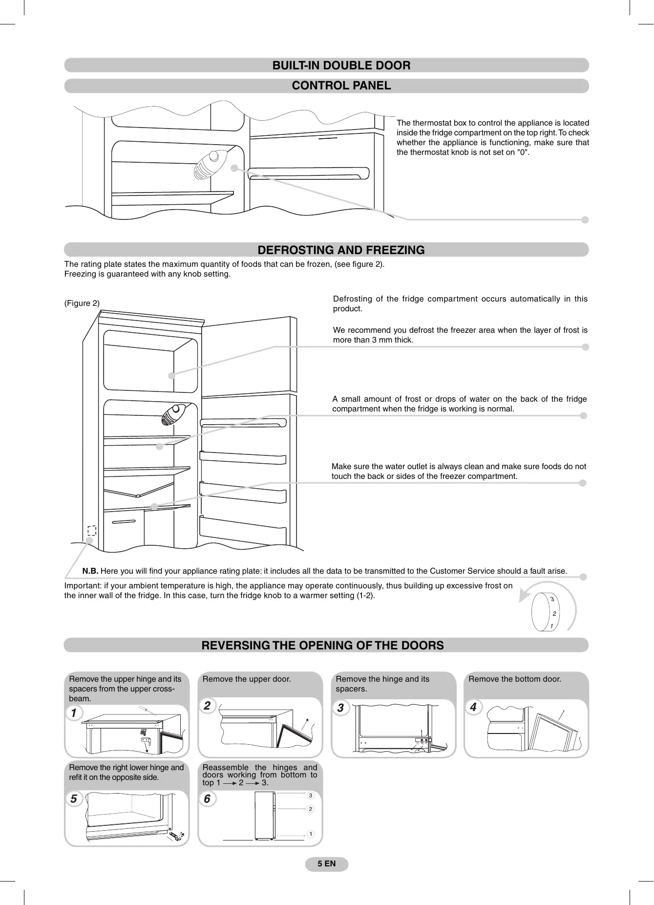 BUILT-IN DOUBLE DOOR CONTROL PANEL The thermostat box to control the appliance is located inside the fridge compartment on the top right. To check whether the appliance is functioning, make sure that the thermostat knob is not set on "0".
