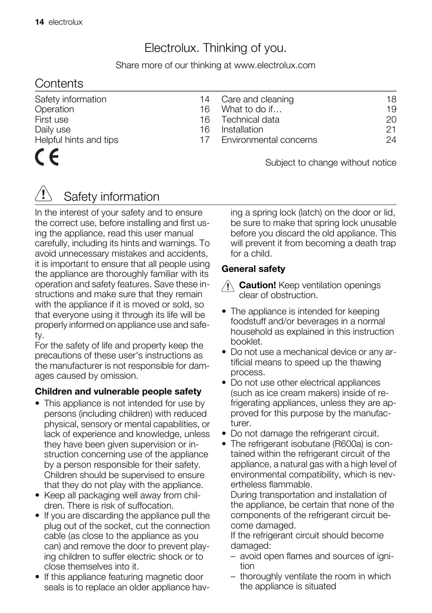 ERN16510 - Fridge ELECTROLUX - Free user manual and instructions