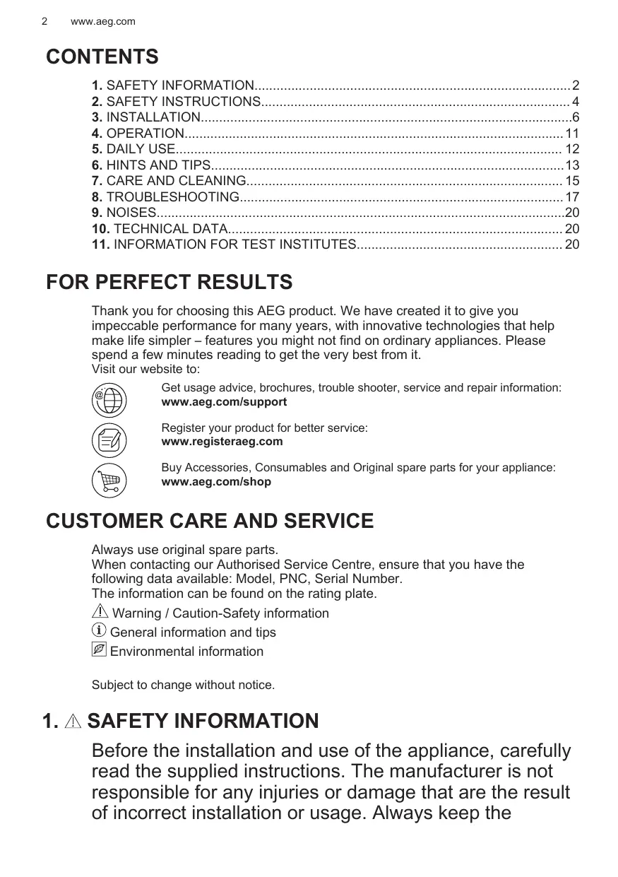Get usage advice, brochures, trouble shooter, service and repair information: www.aeg.com/support