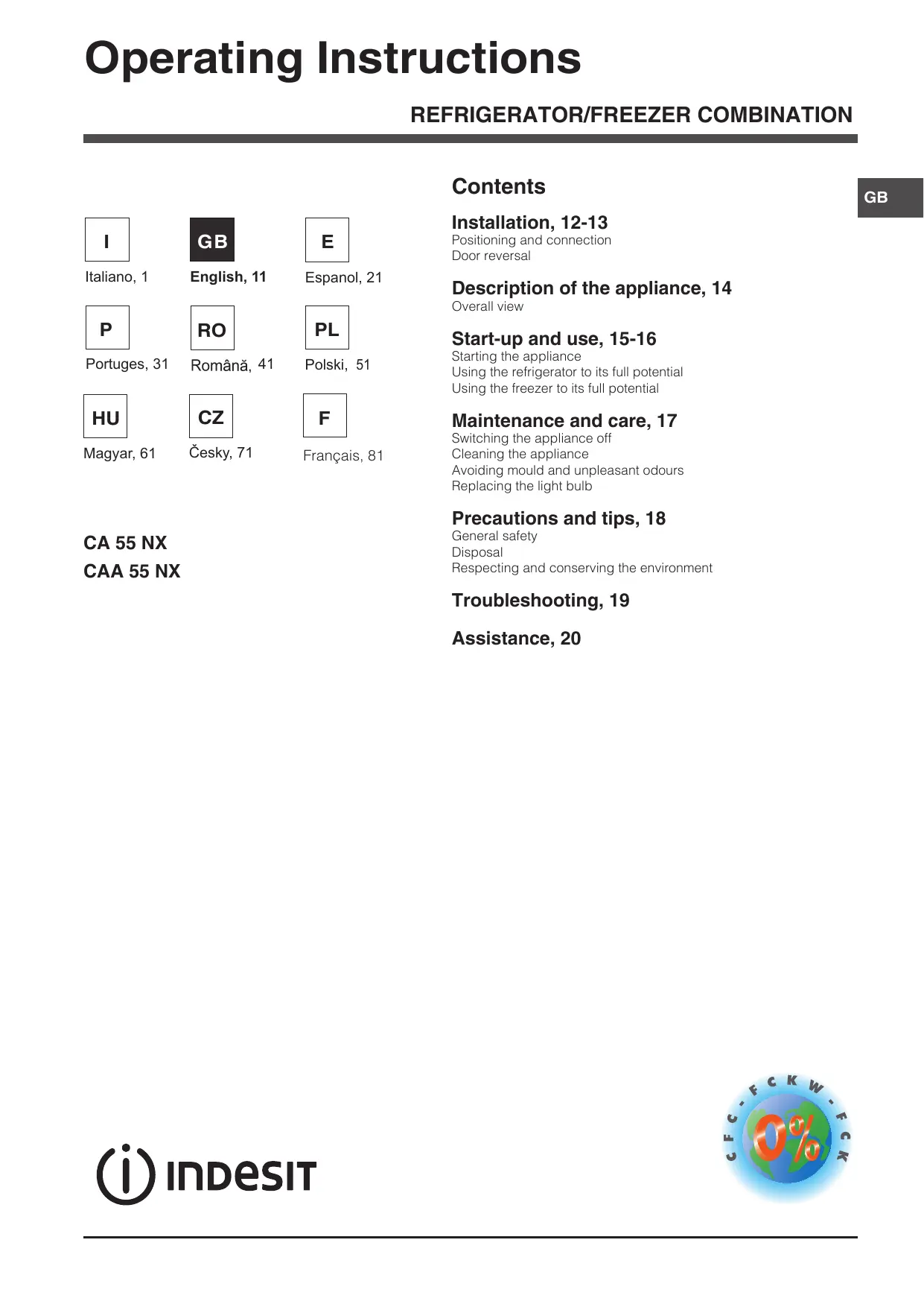 Download the instructions for your Fridge in PDF format for free! Find your manual CAA55NX1 - CAA 55 NX - INDESIT and take your electronic device back in hand. On this page are published all the documents necessary for the use of your device. CAA55NX1 - CAA 55 NX by INDESIT.