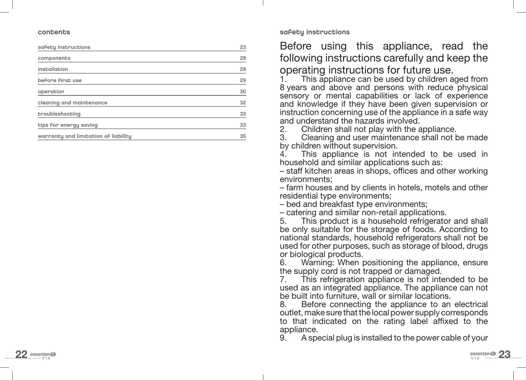 V.1.0 Before using this appliance, read the following instructions carefully and keep the operating instructions for future use.