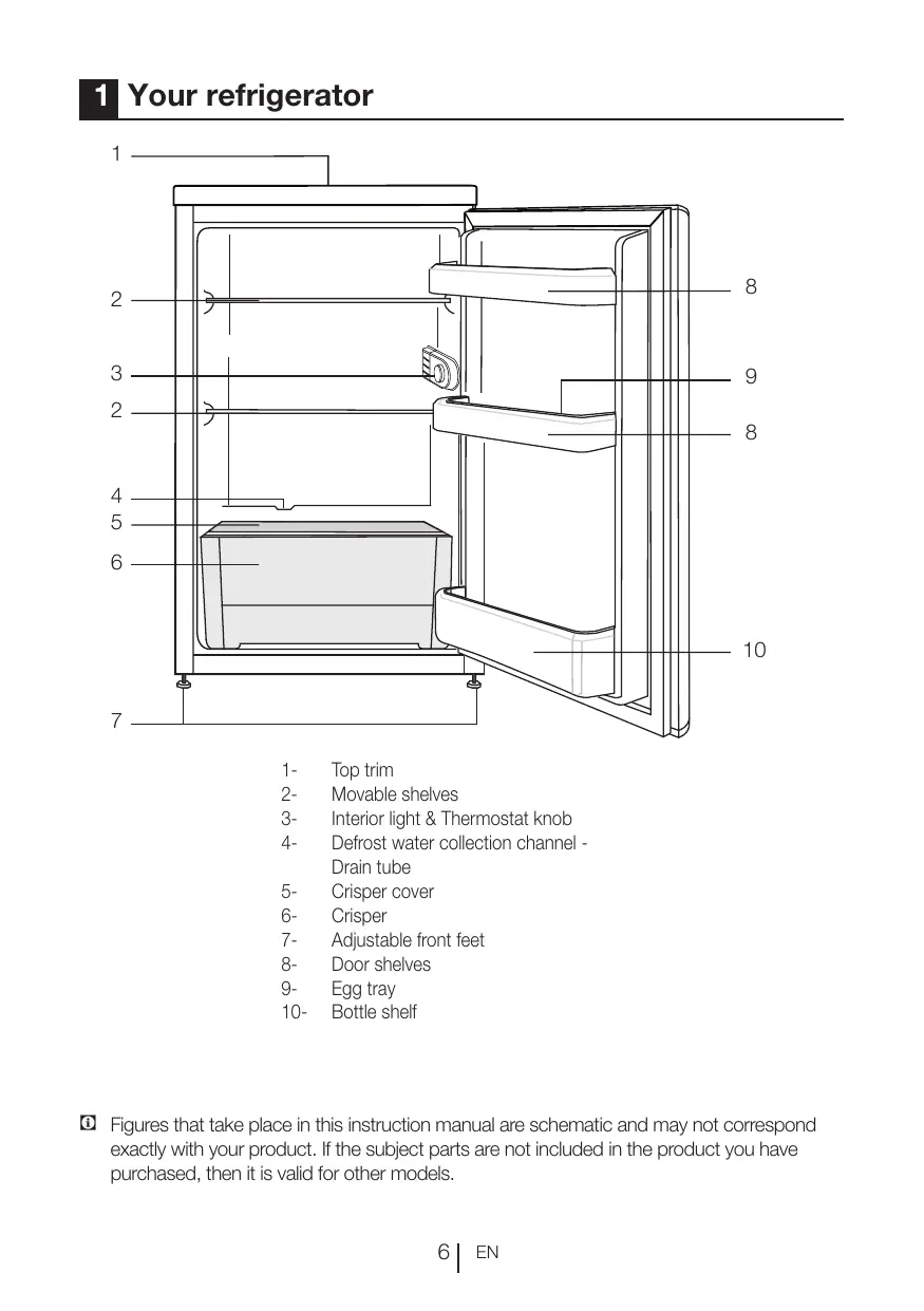 • You may consult your authorized dealer or waste collection center of your municipality about the disposal of your refrigerator. Before disposing of your refrigerator, cut out the electric plug and, if there are any locks on the door, make them inoperable in order to protect children against any danger.