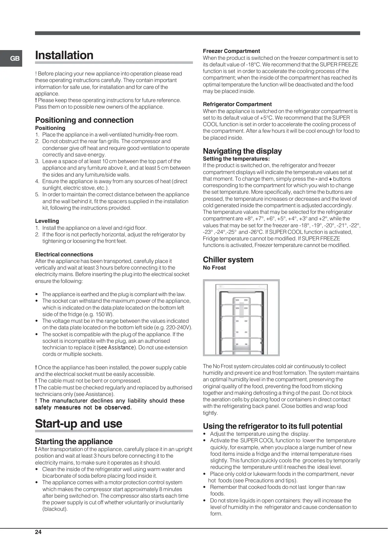 Download the instructions for your Fridge in PDF format for free! Find your manual BIAA 34 F X H Y - 77830 - INDESIT and take your electronic device back in hand. On this page are published all the documents necessary for the use of your device. BIAA 34 F X H Y - 77830 by INDESIT.