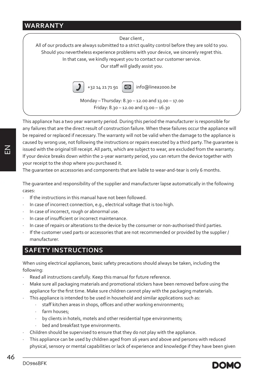 DO986BFK - DOMO - Free user manual and instructions