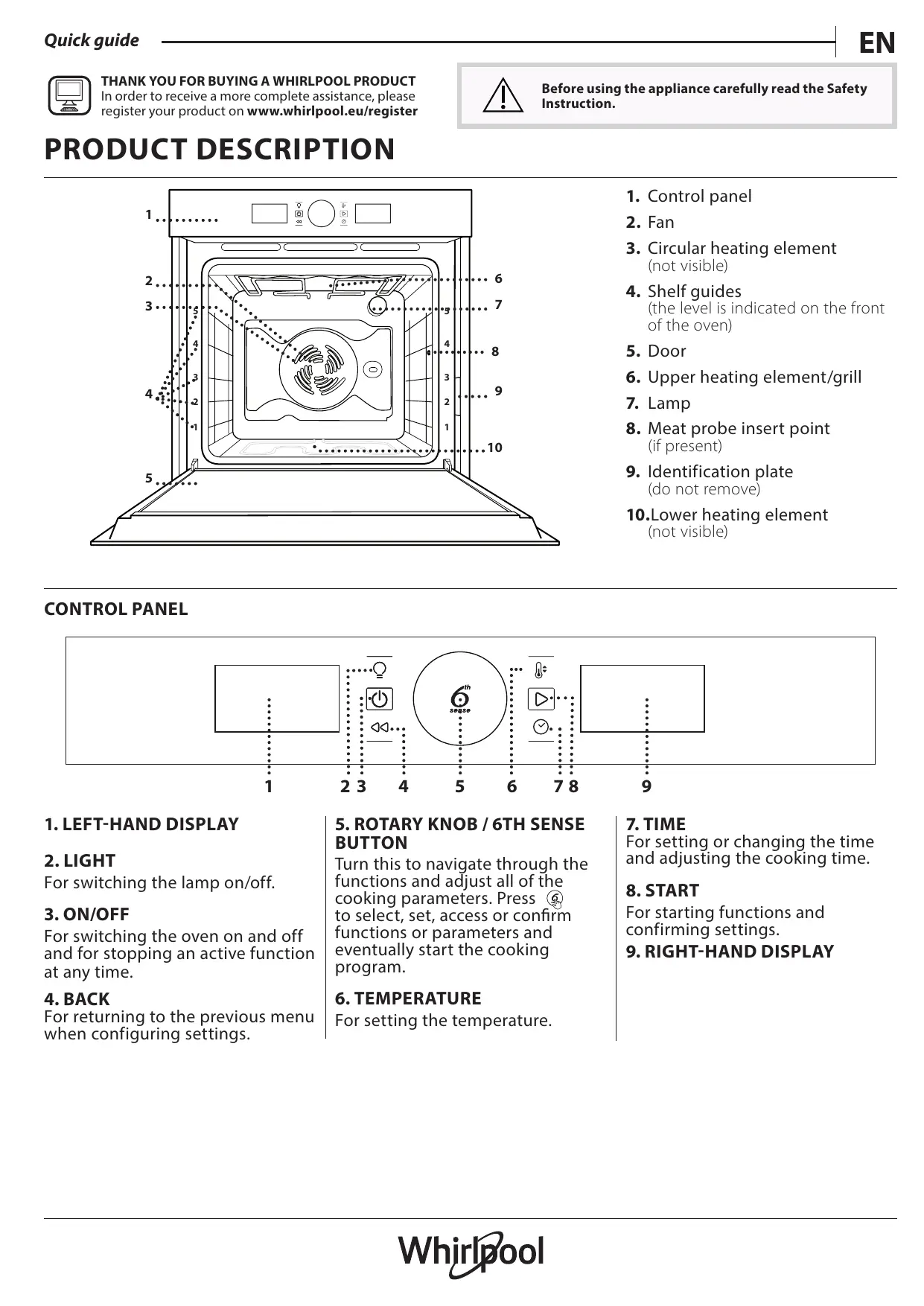 Quick guide THANK YOU FOR BUYING A WHIRLPOOL PRODUCT In order to receive a more complete assistance, please register your product on www.whirlpool.eu/register