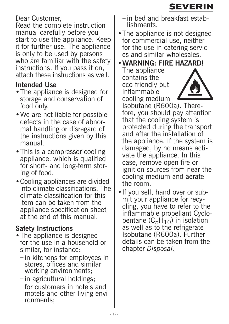 en verre, plastiques ou les ampoules. La garantie expire dans le cas d’une intervention non autorisée par Severin. Si une réparation s'avère nécessaire, merci de contacter notre service client par téléphone et e-mail. Les coordonnées de contact sont disponibles dans l'annexe de ce manuel. Les réglementations concernant les garanties légales avec le fournisseur et autres garanties de fournisseur restent inchangées.