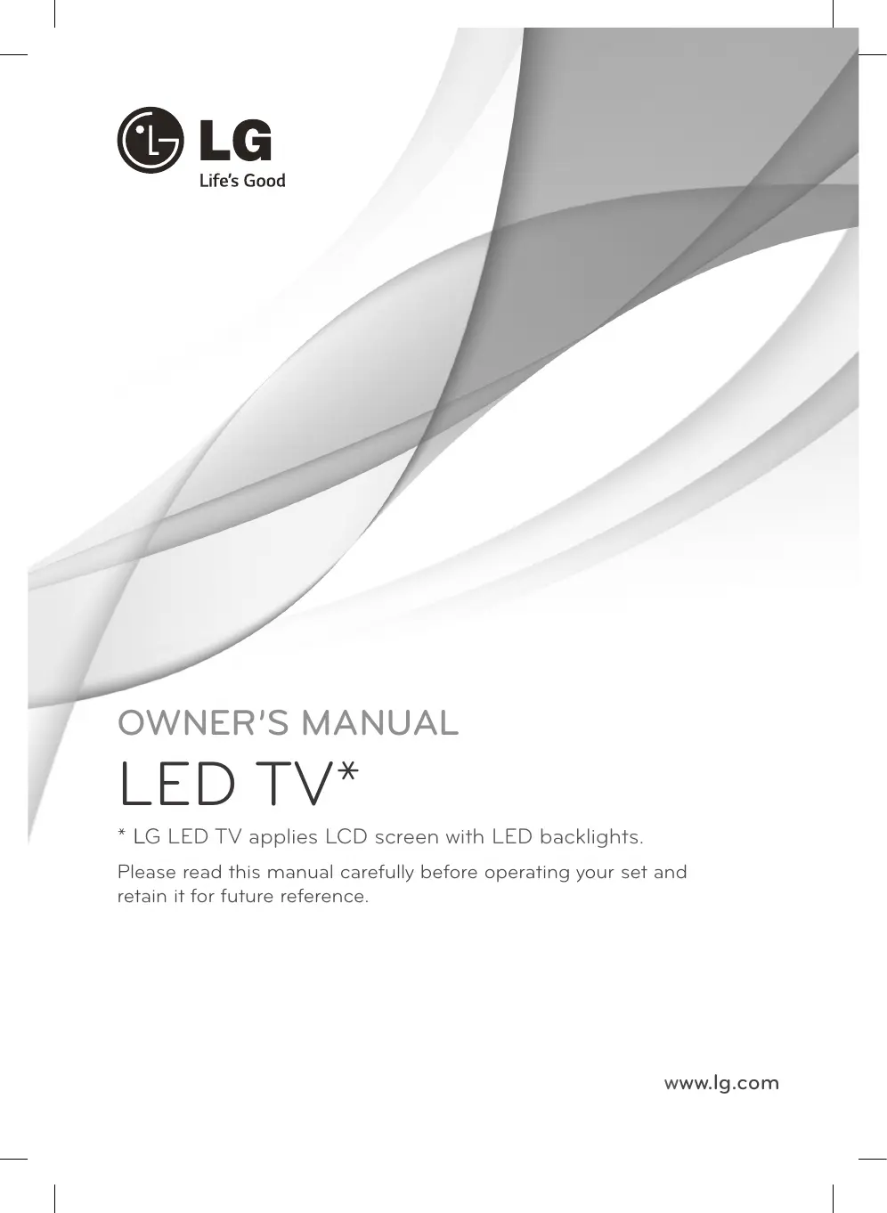 - LG LED TV applies LCD screen with LED backlights. Please read this manual carefully before operating your set and retain it for future reference. www.lg.com