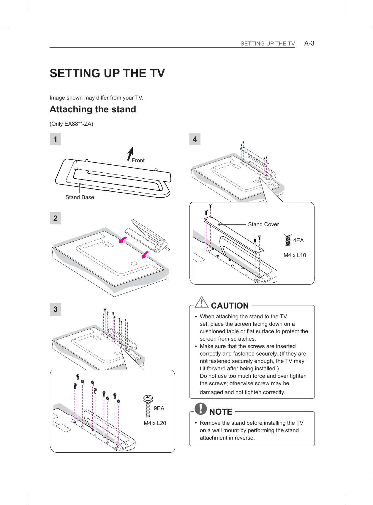 Image shown may differ from your TV. Attaching the stand (Only EA88**-ZA)