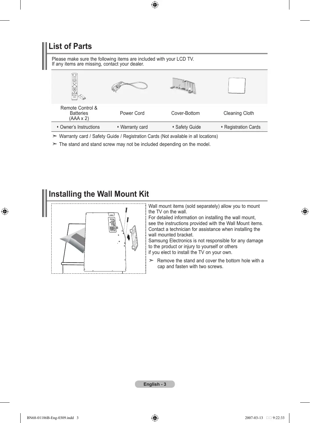 © 2007 Samsung Electronics Co., Ltd. All rights reserved. BN68-01186B-Sln-0312.indd 1 2007-03-13 8:28:10