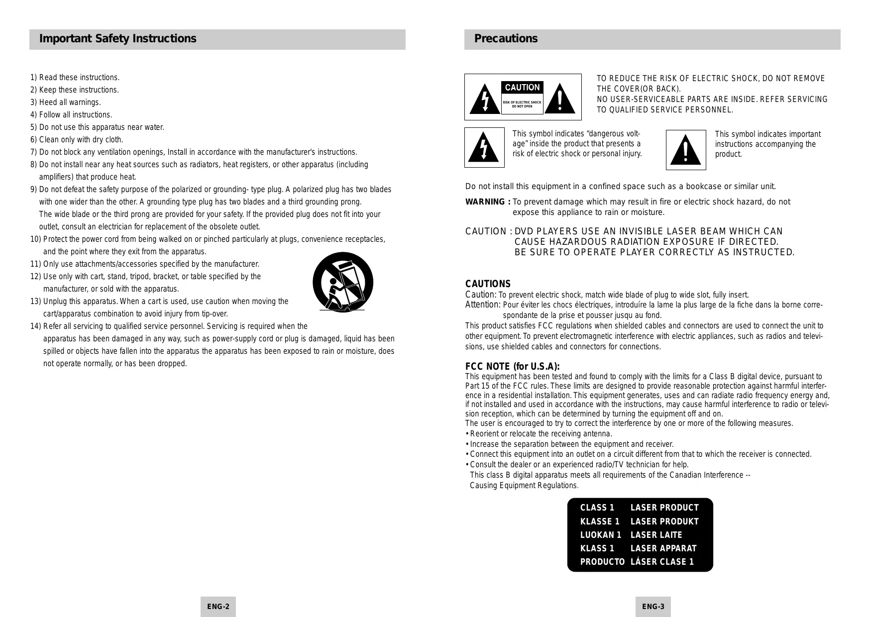- ENG-2 ENG-3 Precautions Before you start CAUTION Table of Contents Setup Accessories Important Safety Instructions p. 2