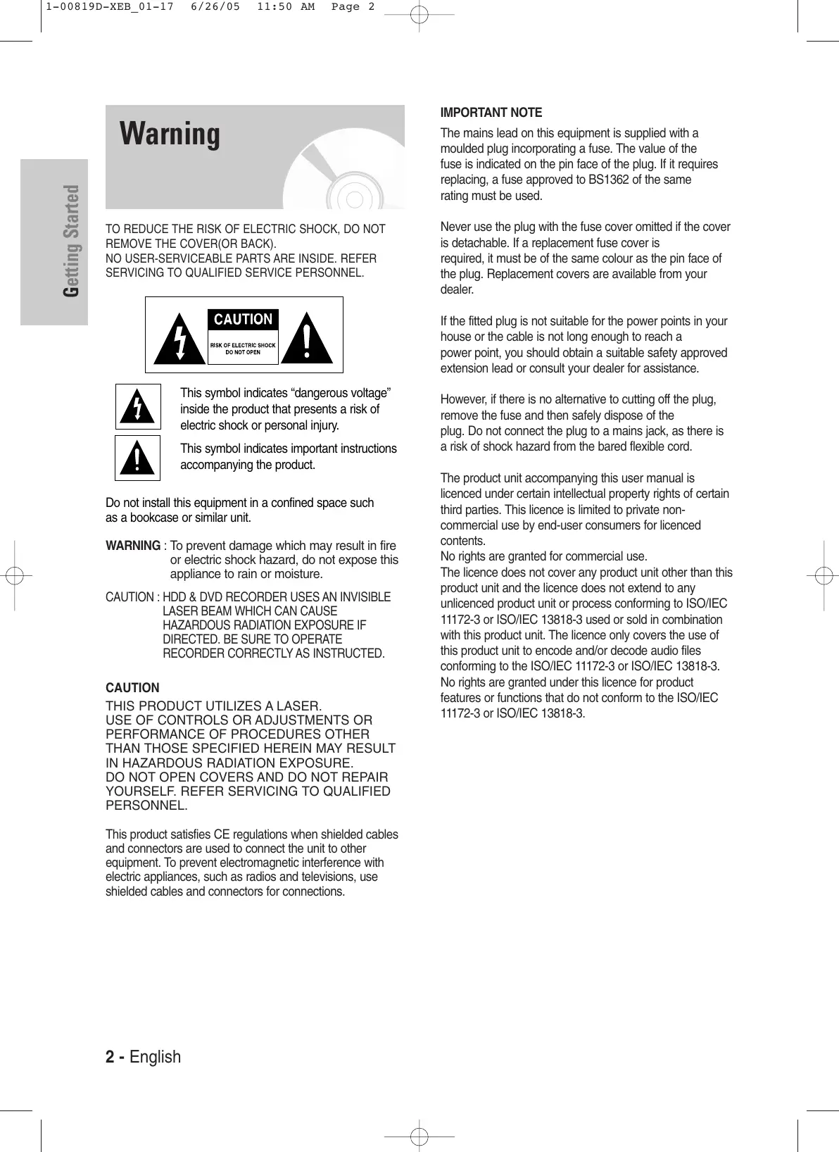 - Do not place the HDD & DVD RECORDER on top of a heat source. English - 3 Getting Started Important Safety Instructions