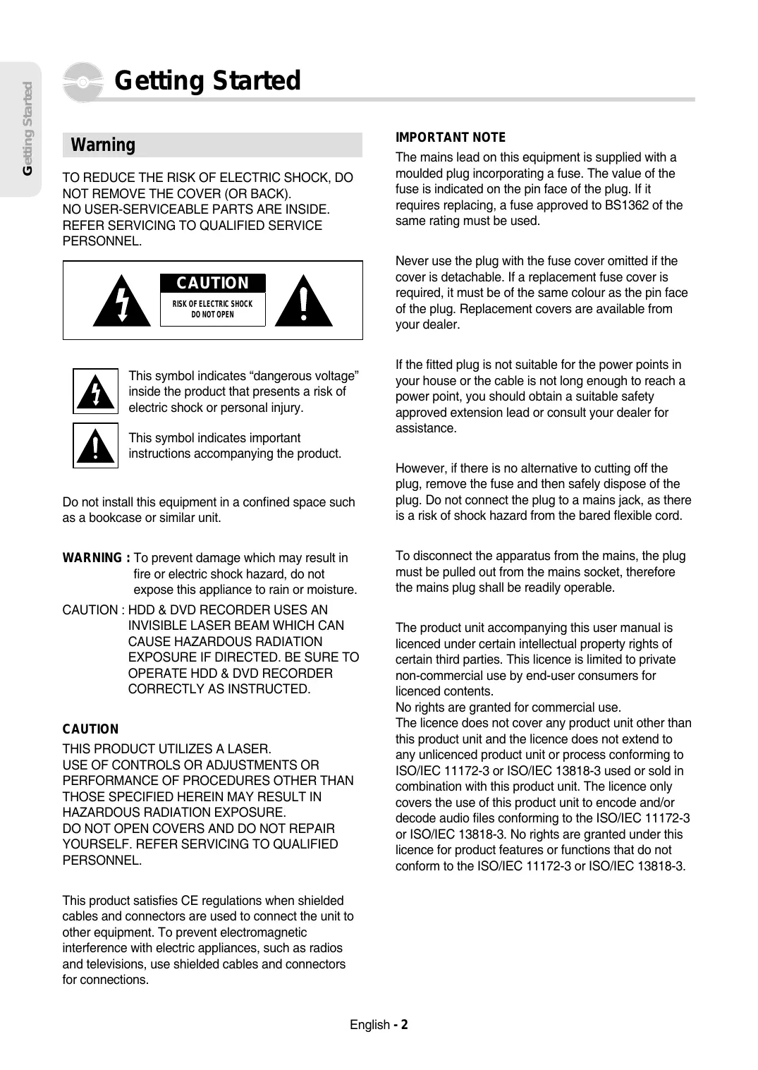 The product unit accompanying this user manual is licenced under certain intellectual property rights of certain third parties. This licence is limited to private non-commercial use by end-user consumers for licenced contents. No rights are granted for commercial use. The licence does not cover any product unit other than this product unit and the licence does not extend to any unlicenced product unit or process conforming to ISO/IEC 11172-3 or ISO/IEC 13818-3 used or sold in combination with this product unit. The licence only covers the use of this product unit to encode and/or decode audio files conforming to the ISO/IEC 11172-3 or ISO/IEC 13818-3. No rights are granted under this licence for product features or functions that do not conform to the ISO/IEC 11172-3 or ISO/IEC 13818-3.