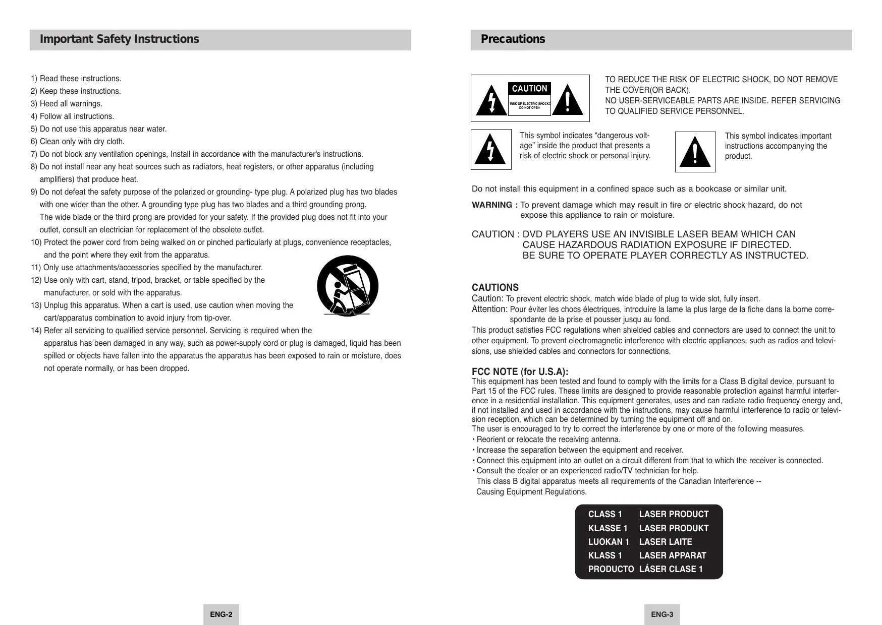 - ENG-2 ENG-3 Precautions Before you start CAUTION Table of Contents Setup Accessories Important Safety Instructions p. 2