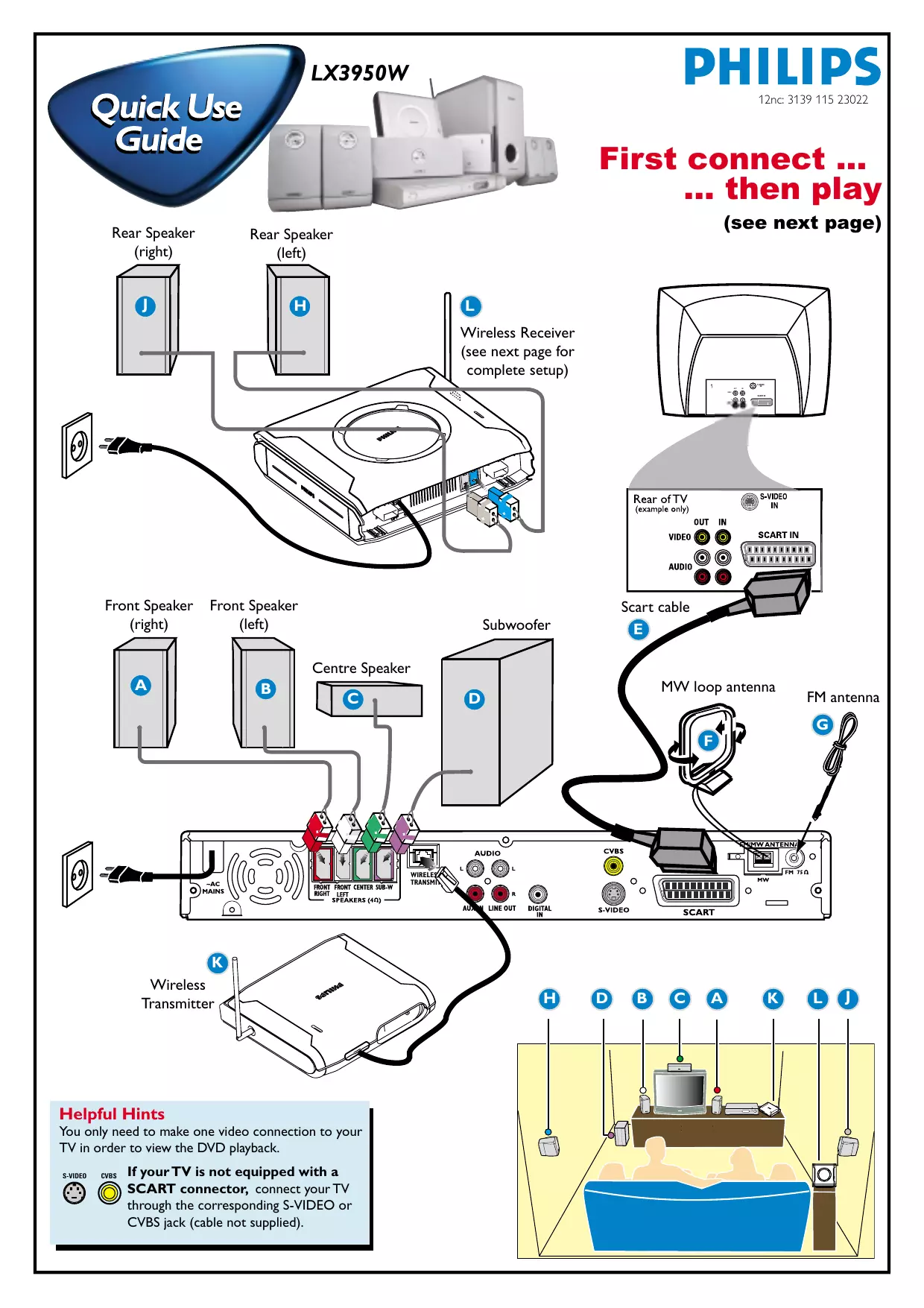 Français Glossaire LX3950W 12nc: 3139 115 23022 First connect ... ... then play Rear Speaker (right) (see next page) Rear Speaker (left)