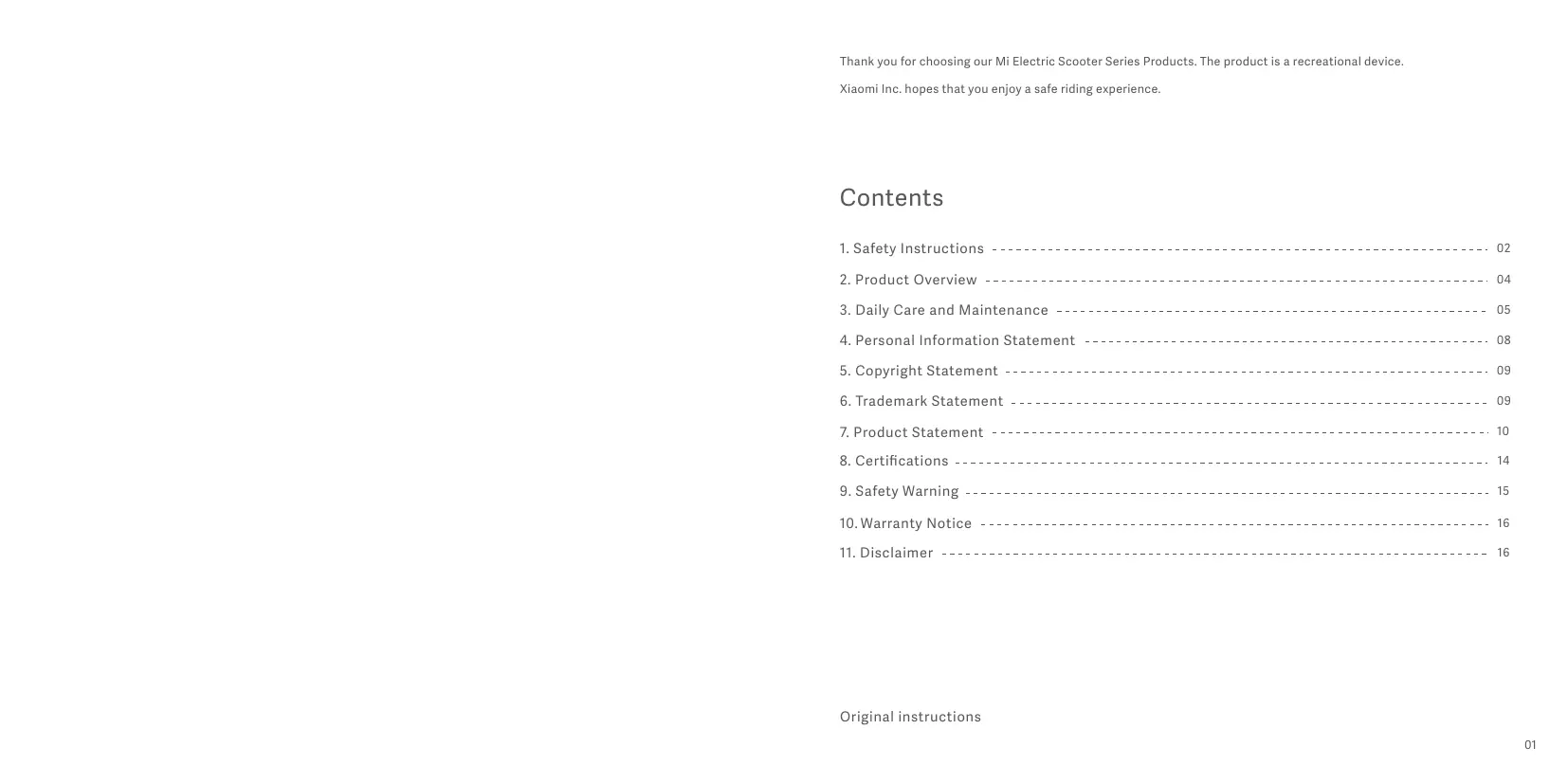 1. Lisez attentivement le mode d’emploi de la la trottinette avant de conduire le véhicule.