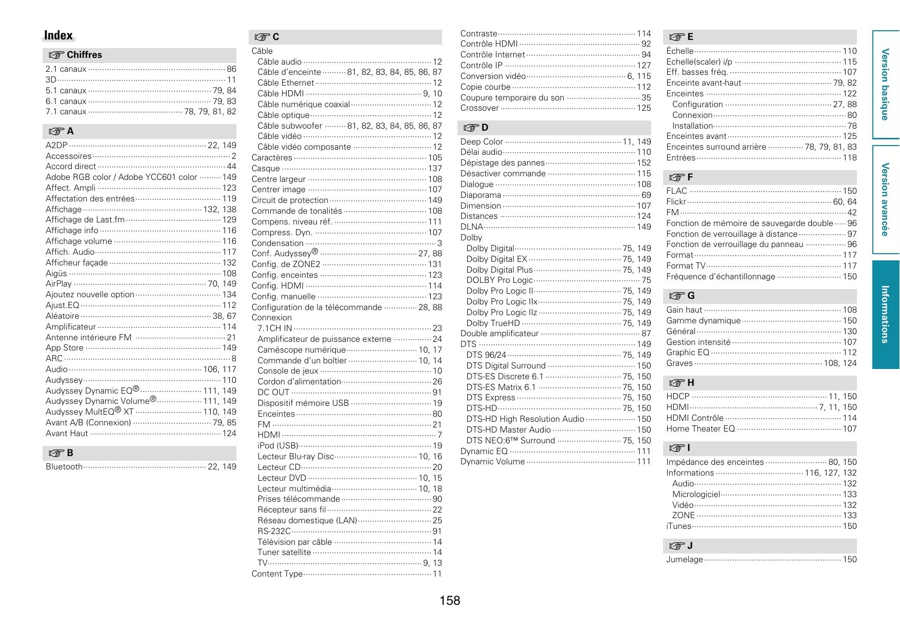 Prise en charge de la norme HDMI (3D, ARC, Deep