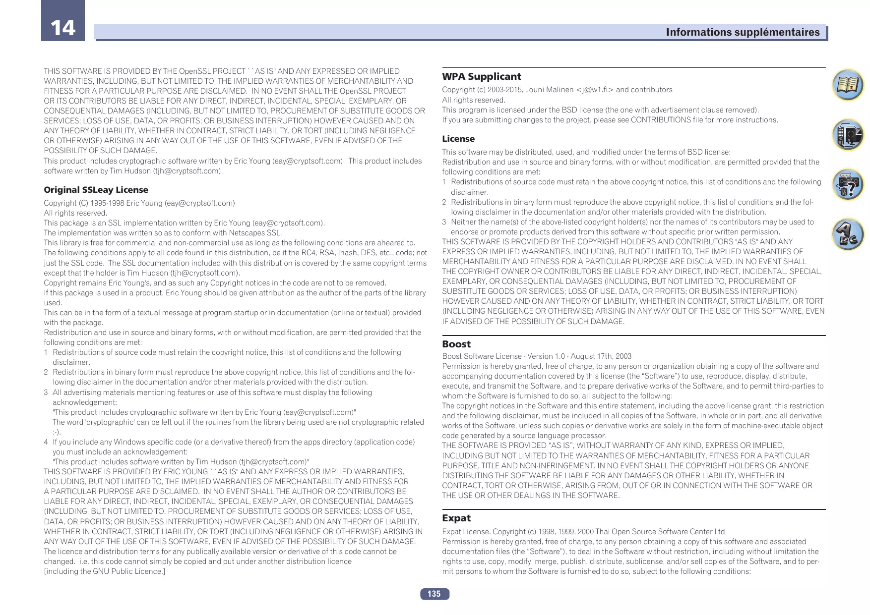 Avis relatif à la licence du logiciel Les licences pour les logiciels “open source” utilisés sur ce récepteur sont indiquées ci-dessous. À des fins de précision, nous avons inclus ici les textes originaux (en anglais).