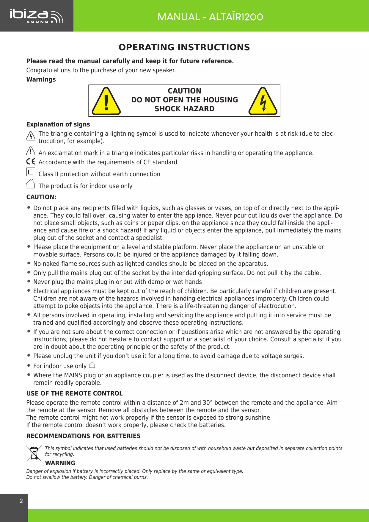 Download the instructions for your Haut_parleur in PDF format for free! Find your manual ALTAIR1200 - IDIIZS and take your electronic device back in hand. On this page are published all the documents necessary for the use of your device. ALTAIR1200 by IDIIZS.