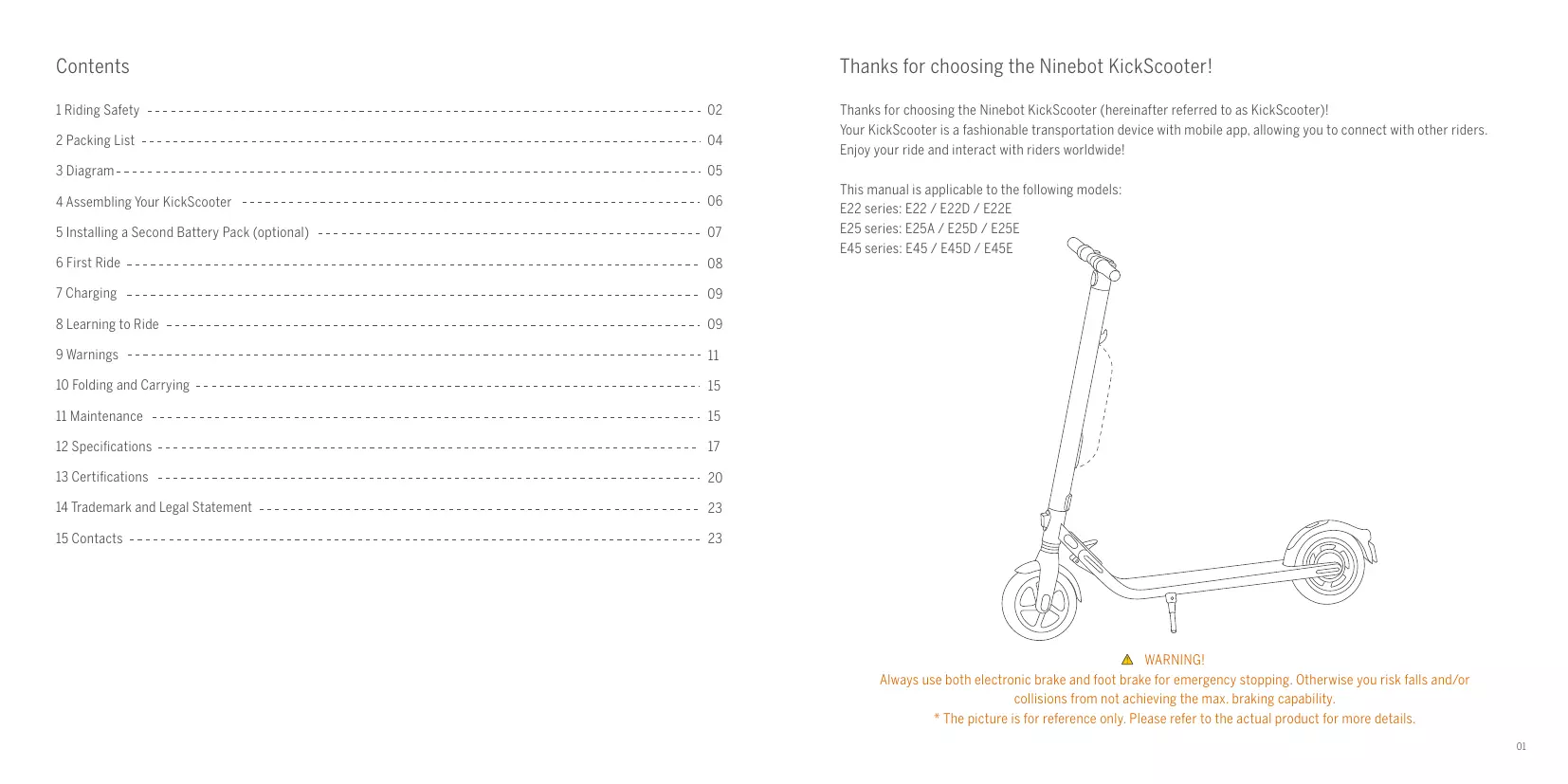 Download the instructions for your Trottinette in PDF format for free! Find your manual F45E - NINEBOT and take your electronic device back in hand. On this page are published all the documents necessary for the use of your device. F45E by NINEBOT.