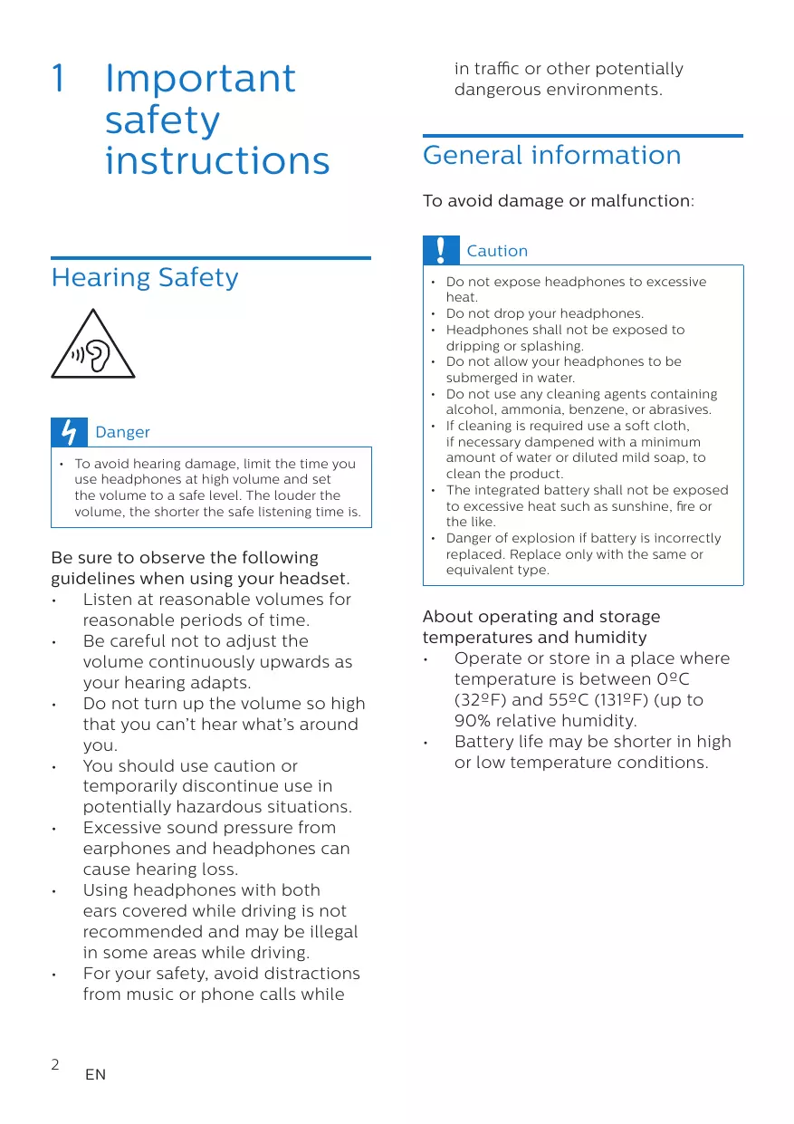 1 Important safety instructions in traffic or other potentially dangerous environments. General information To avoid damage or malfunction: Caution Hearing Safety
