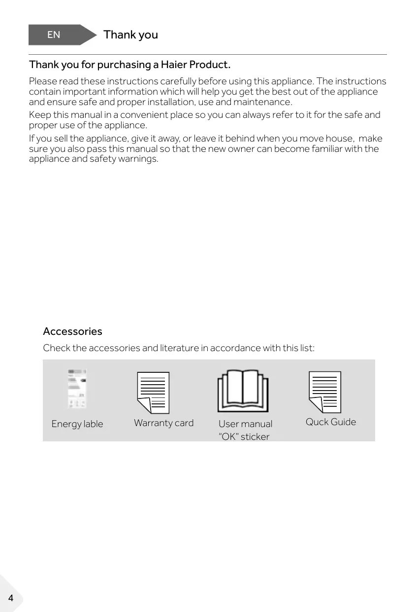 Courant d’entrée (A) l’espace Service & Assistance à l’adresse www.haier.com où vous pouvez activer la demande de service et trouver également les FAQ. Pour contacter notre Service, assurez-vous que vous disposez des données suivantes. Les informations se trouvent sur la plaque signalétique. Modèle N° de série Vérifiez également la carte de garantie fournie avec le produit en cas de garantie.