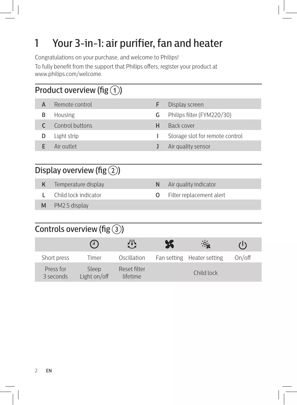 Turning on and off También puede sustituir el filtro antes de que la alerta de sustitución del filtro ( ) se encienda. En caso de que lo haga, deberá restablecer manualmente el contador de vida útil del filtro. 1 Desenchúfelo de la toma de corriente y espere 10 segundos. 2 Introduzca la clavija en la toma de corriente (fig. z). 3 Antes de que transcurran 15 segundos desde el encendido, mantenga pulsado el botón durante 3 segundos para reiniciar el contador de vida útil del filtro. » La alerta de sustitución del filtro parpadea una vez después de restablecer correctamente el filtro.