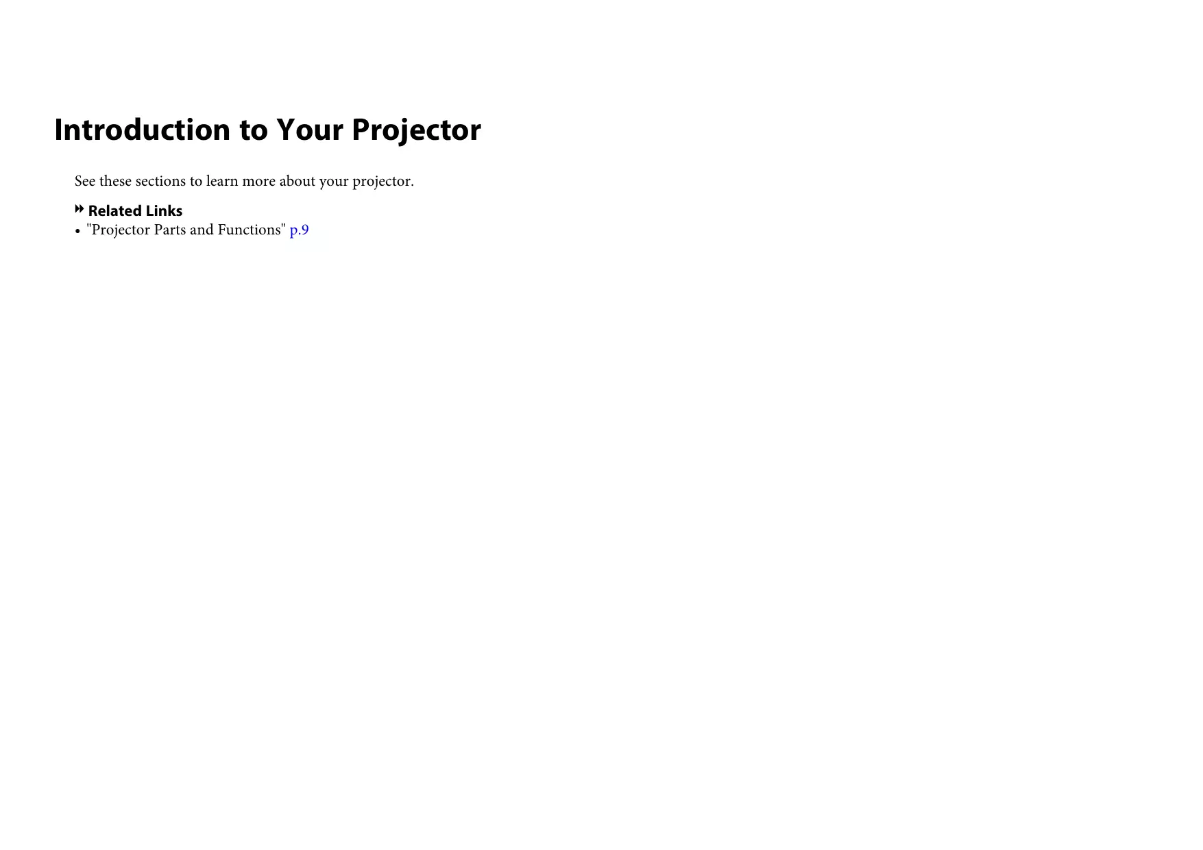 Introduction to Your Projector See these sections to learn more about your projector. g Related Links • "Projector Parts and Functions" p.9