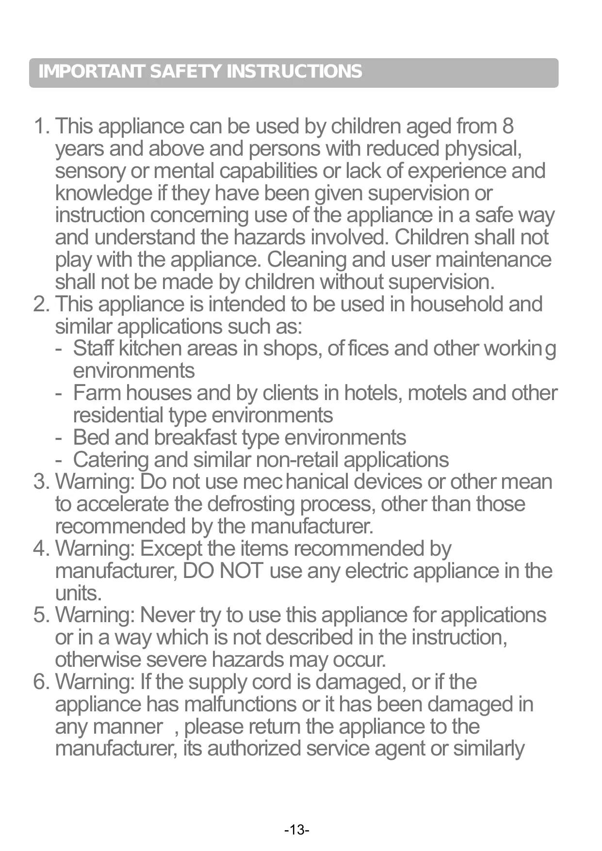 - Warning: If the supply cord is damaged, or if the appliance has malfunctions or it has been damaged in any manner , please return the appliance to the manufacturer, its authorized service agent or similarly