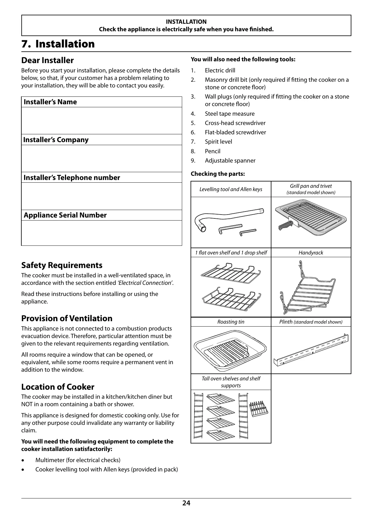 Installer: Please complete your details in this Guide, inform the user how to operate the cooker and hand oven the instructions.