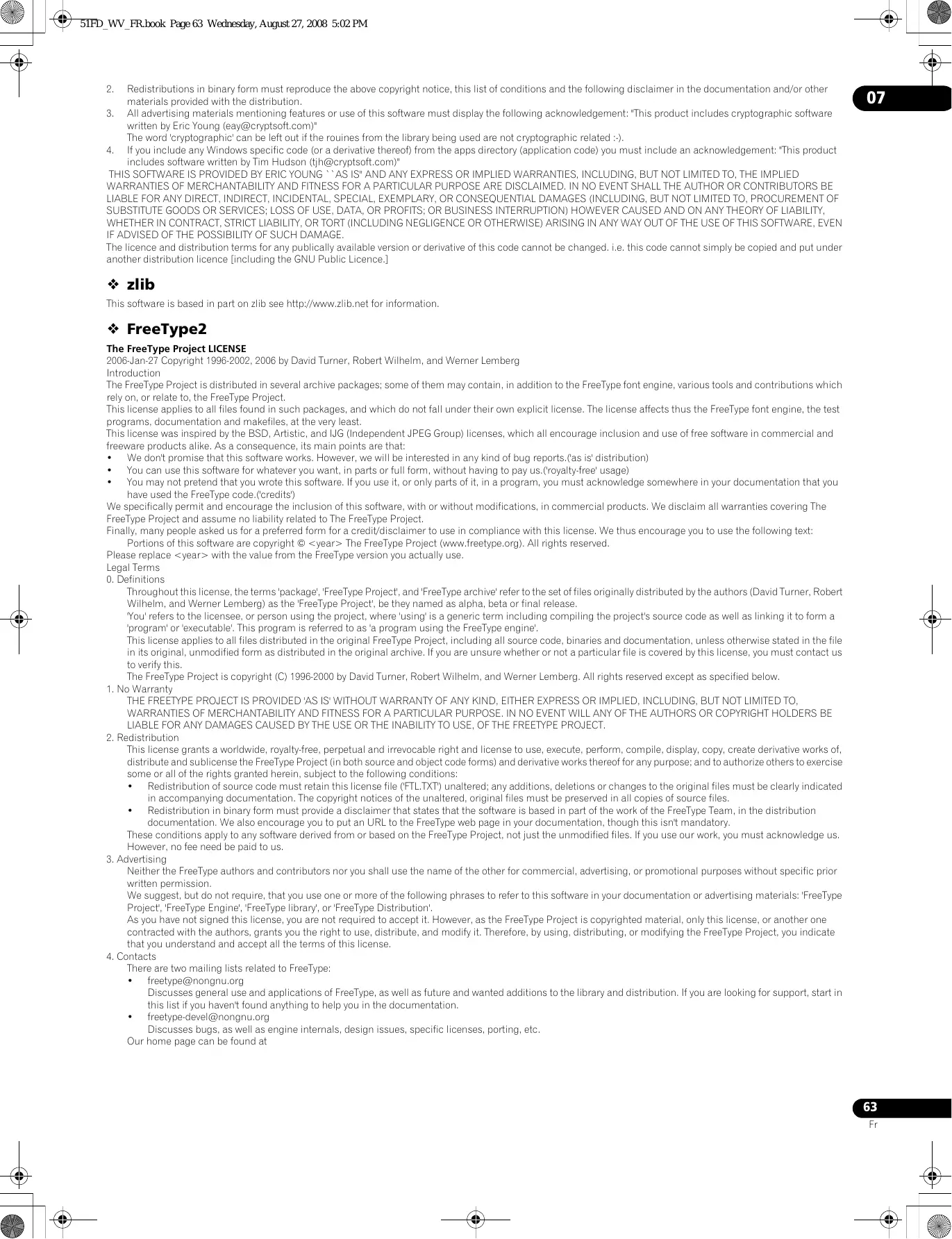 Licences Les licences du logiciel utilisé dans ce lecteur sont les suivantes. Pour des raisons de précision, nous avons inclus les textes originaux (en anglais). Les traductions sont fournies à titre de référence seulement. Veuillez noter que ces traductions ne sont pas des textes officiels.