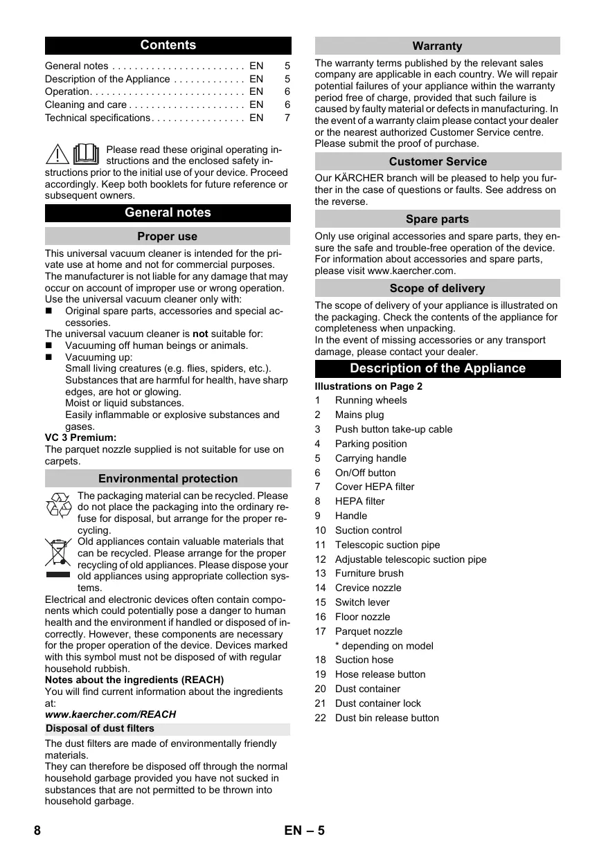 Download the instructions for your Aspirateur traîneau in PDF format for free! Find your manual VCS - KARCHER and take your electronic device back in hand. On this page are published all the documents necessary for the use of your device. VCS by KARCHER.