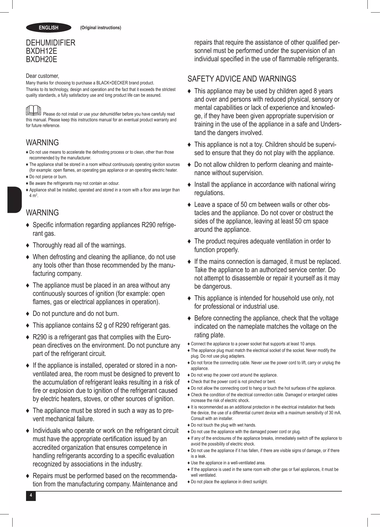 DEHUMIDIFIER BXDH12E BXDH20E Dear customer,