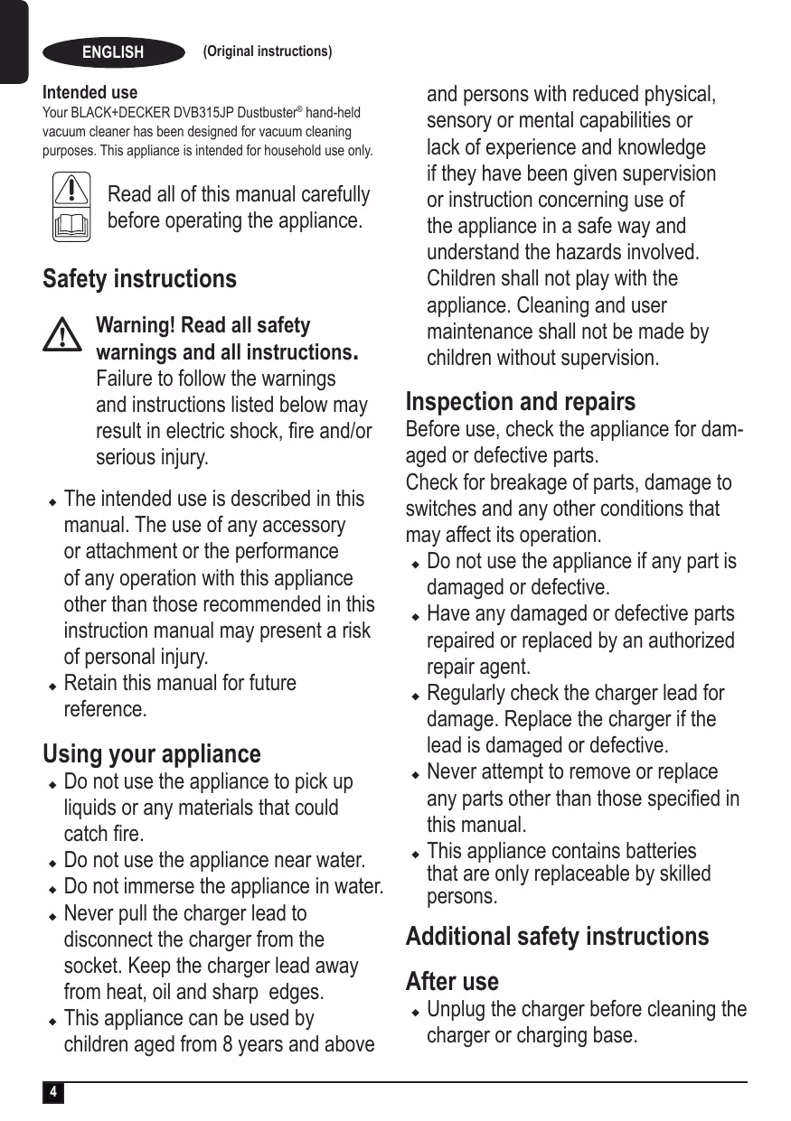 DVB315JP - Aspirateur BLACK & DECKER - Free user manual and instructions