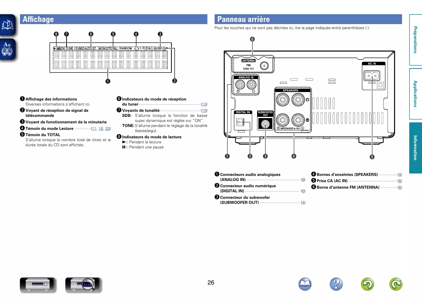 Accessoires··························································· 1 Affichage····························································· 26 Alarme································································· 21 Antenne intérieure FM·········································· 6