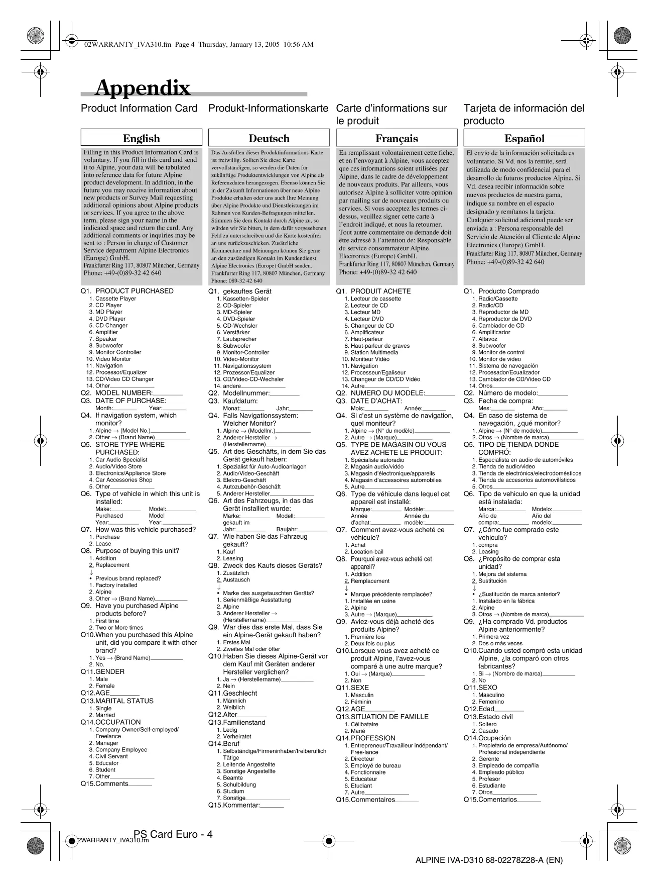 Download the instructions for your Car stereo in PDF format for free! Find your manual IVA-D310R - ALPINE and take your electronic device back in hand. On this page are published all the documents necessary for the use of your device. IVA-D310R by ALPINE.