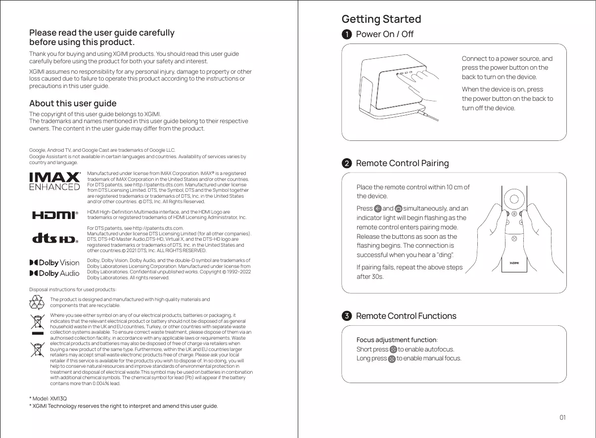 * Model: XM13Q * XGIMI Technology reserves the right to interpret and amend this user guide.