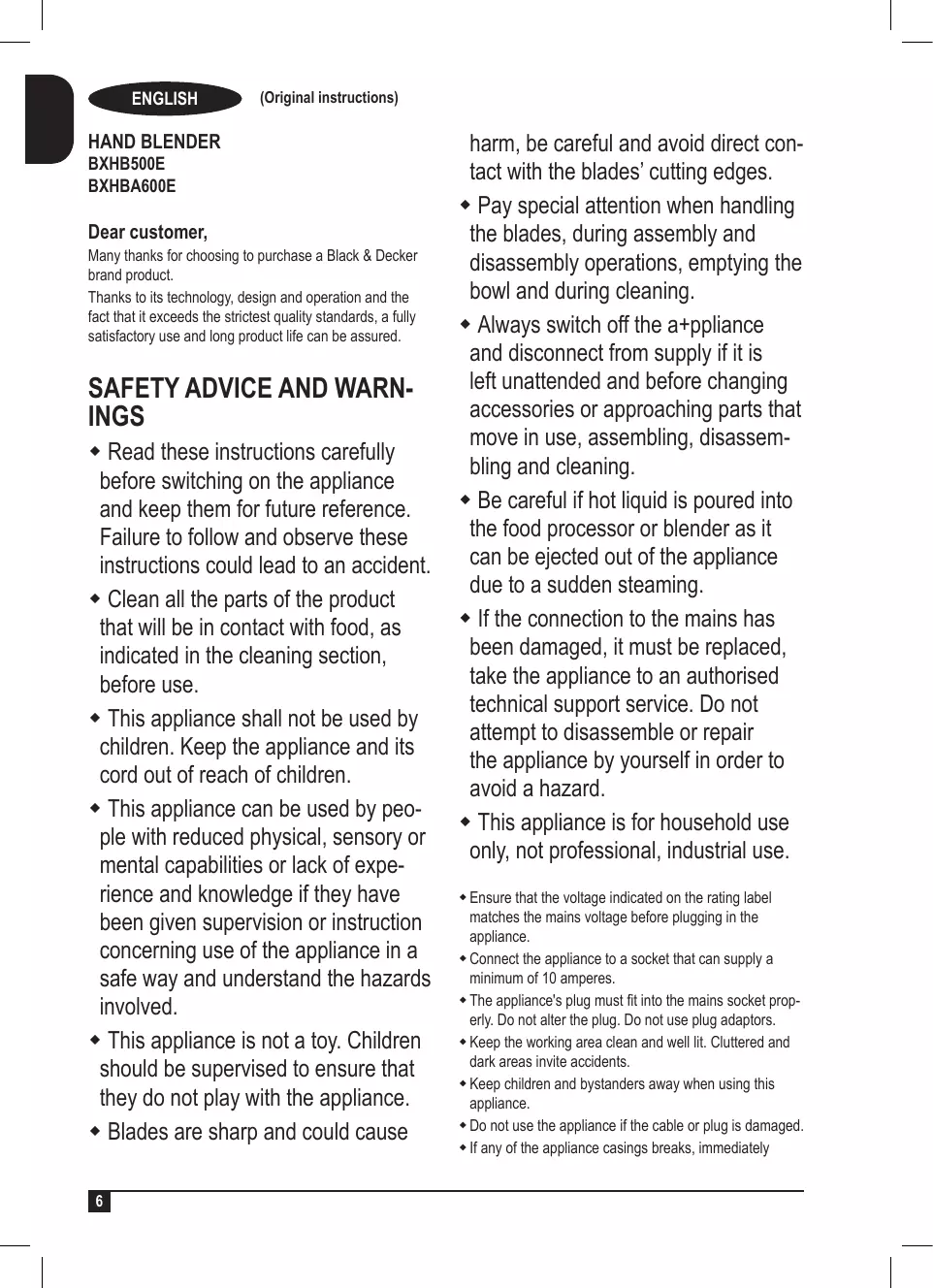Download the instructions for your Mixeur plongeant in PDF format for free! Find your manual BXHB500E - BLACK & DECKER and take your electronic device back in hand. On this page are published all the documents necessary for the use of your device. BXHB500E by BLACK & DECKER.