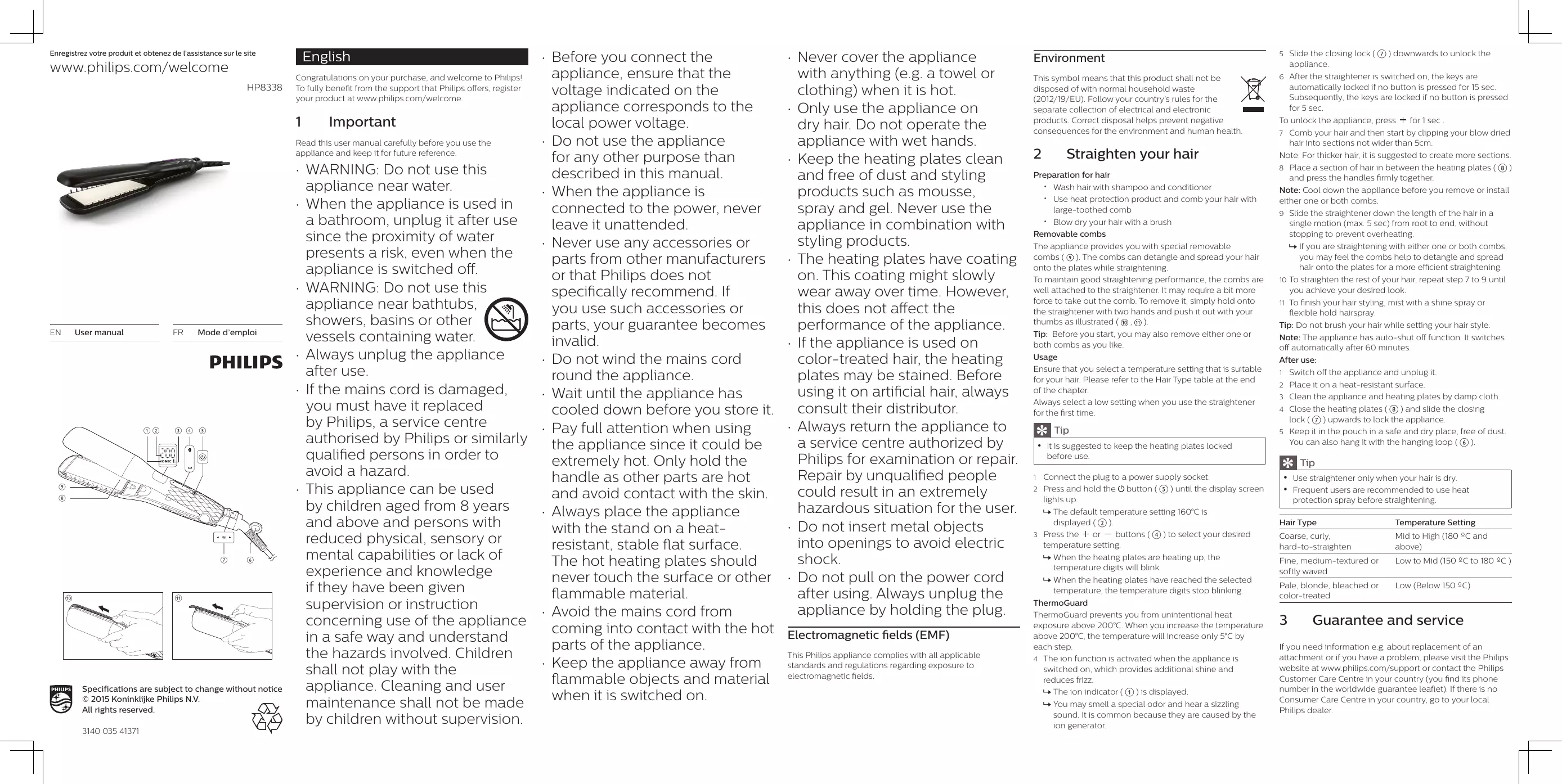 Download the instructions for your Rasoir électrique in PDF format for free! Find your manual HP8338/20 - PHILIPS and take your electronic device back in hand. On this page are published all the documents necessary for the use of your device. HP8338/20 by PHILIPS.