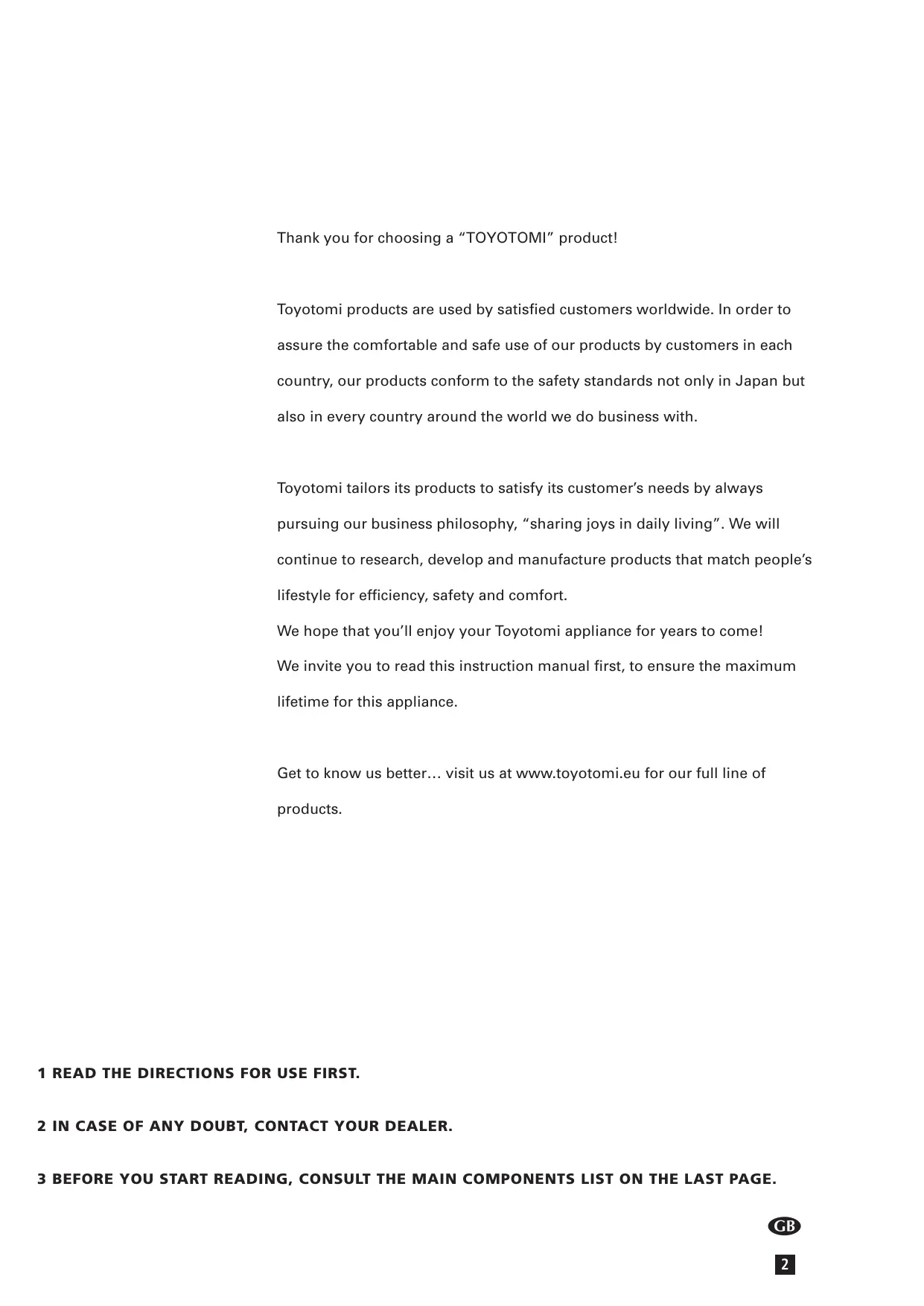 Apprenez à mieux nous connaître ... rendez-vous sur notre site www.toyotomi.eu pour une vue d’ ensemble de notre gamme de produits.