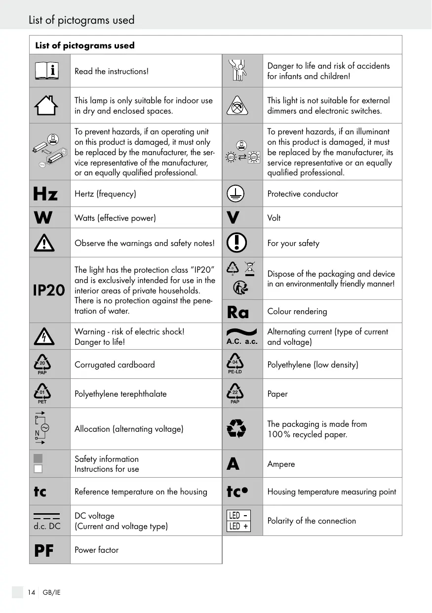 14170906L 230–240 V ~, 50 Hz 38 W | IP20