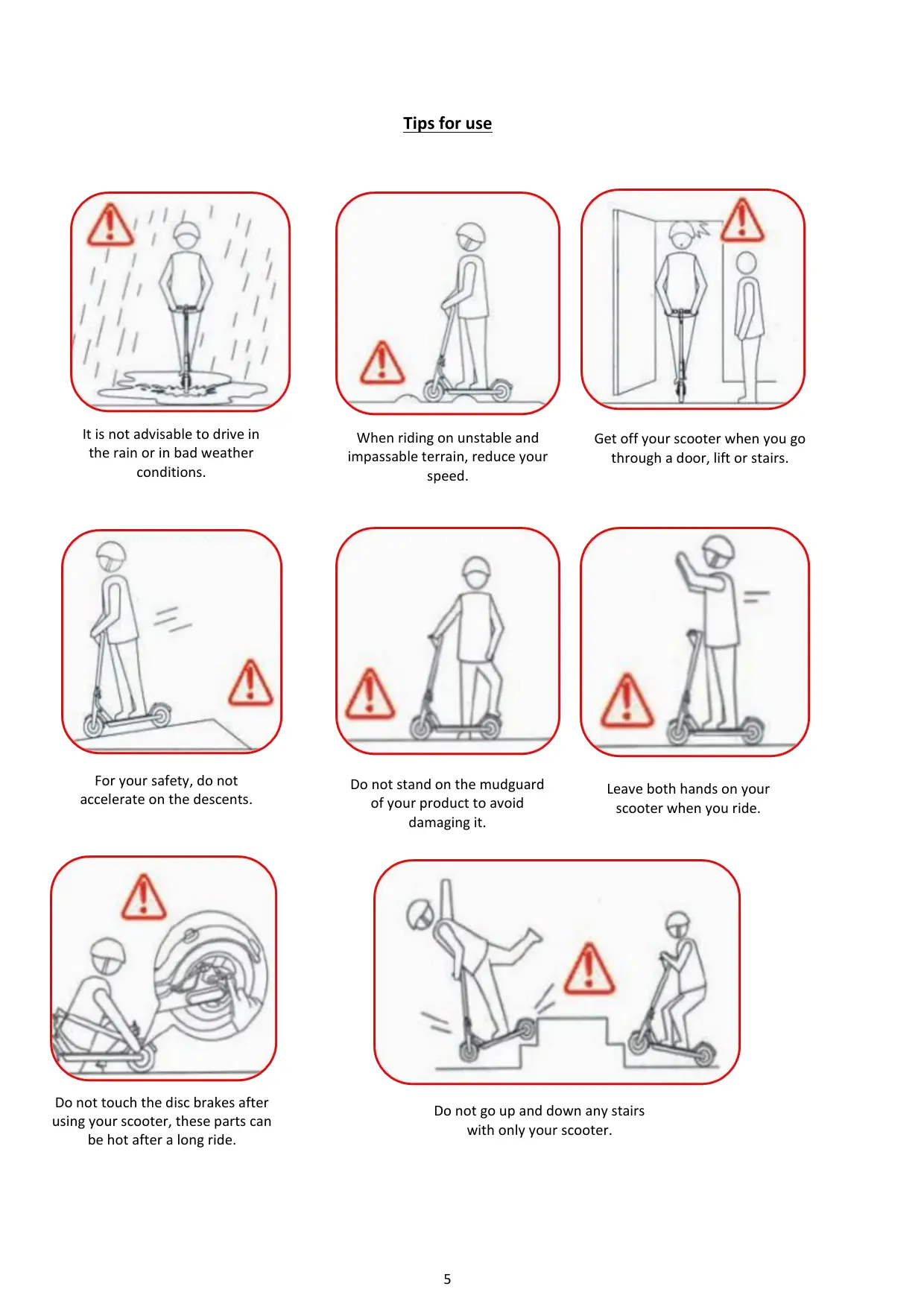 Ke N’accrochez aucun objet à votre trottinette Laissez vos deux pieds sur le plateau de pouvant influencer sur la répartition du votre trottinette.