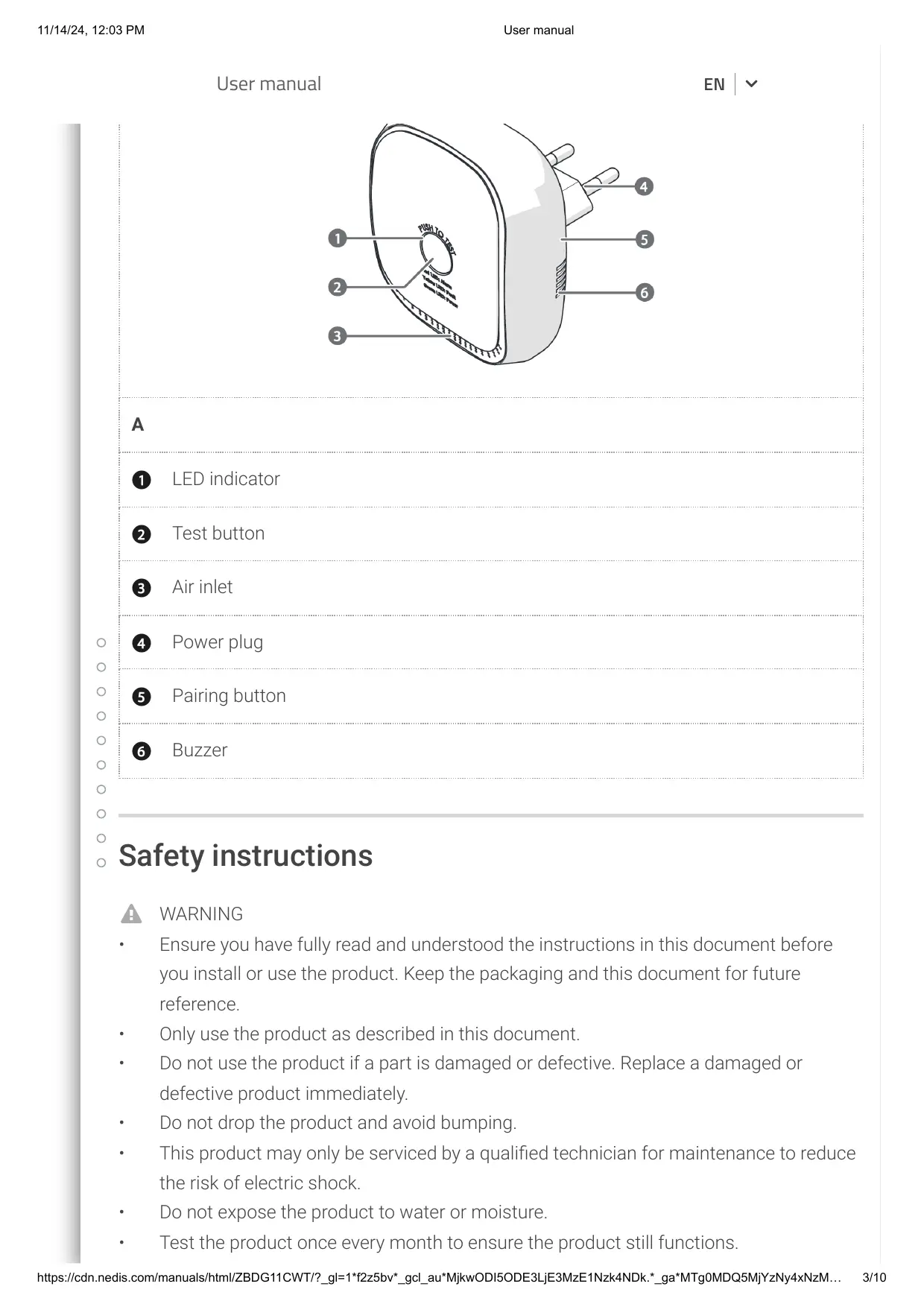 ZBDG11WT - 3.0 NEDIS - Détecteur de gaz Zigbee - Free user manual and instructions