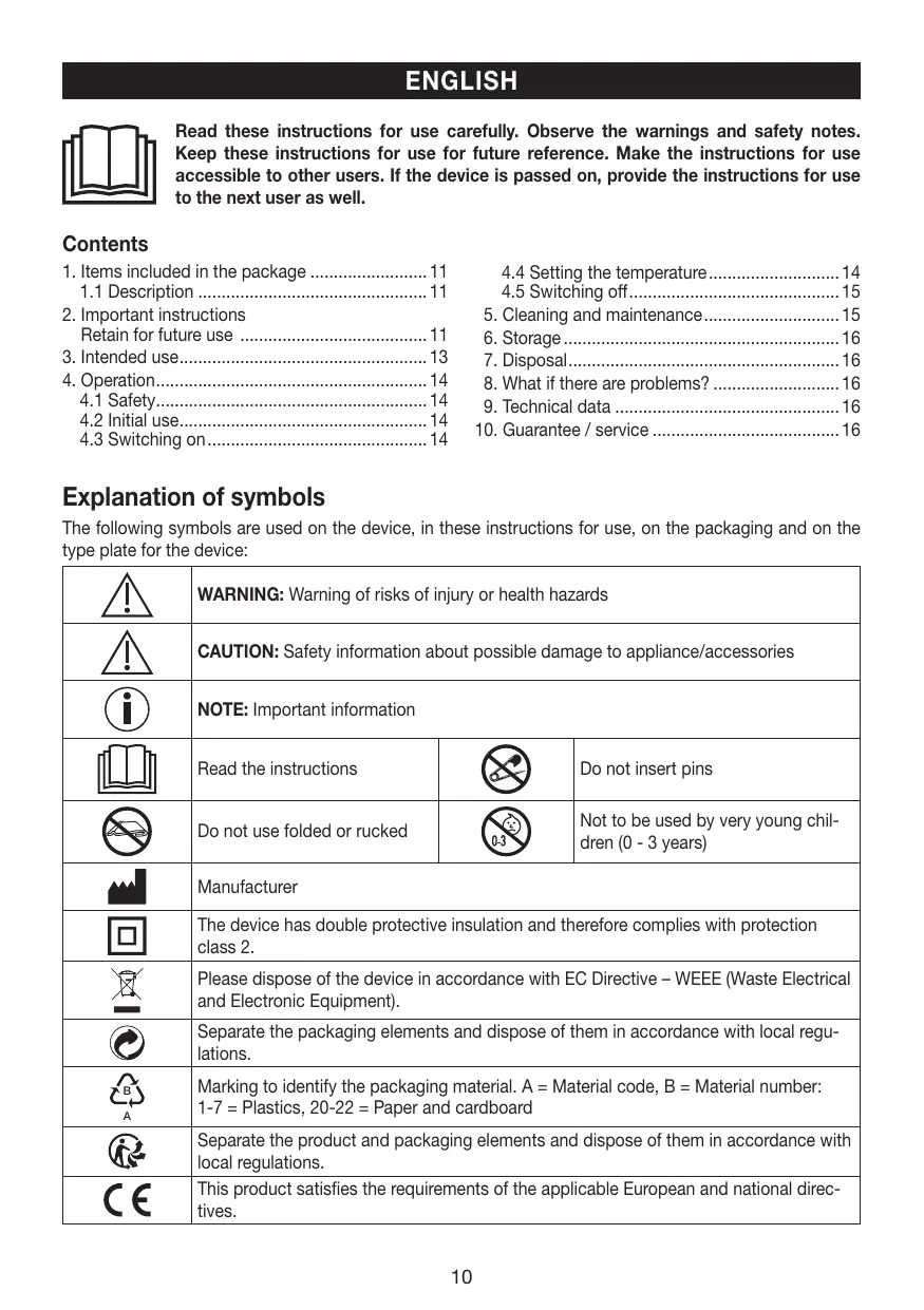 + Ce chauffe-matelas peut être utilisé par les enfants à partir de 8 ans ainsi que les déficients physiques, sensoriels ou mentaux et les per- sonnes ayant peu de connaissances ou d'expérience à la condition qu'ils soient surveillés ou sachent comment l'utiliser en toute sécurité et en comprennent les risques.