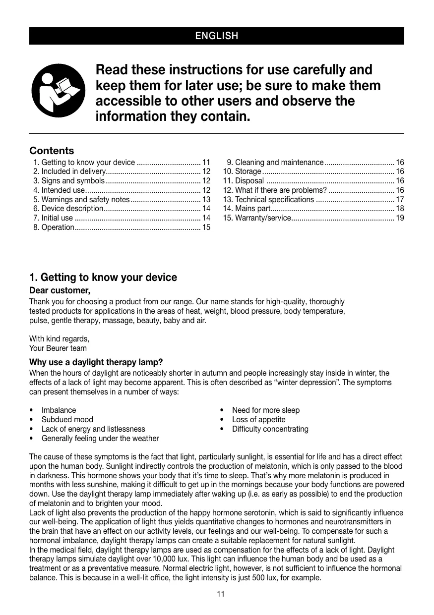 Download the instructions for your Light therapy in PDF format for free! Find your manual TL41 touch - BEURER and take your electronic device back in hand. On this page are published all the documents necessary for the use of your device. TL41 touch by BEURER.