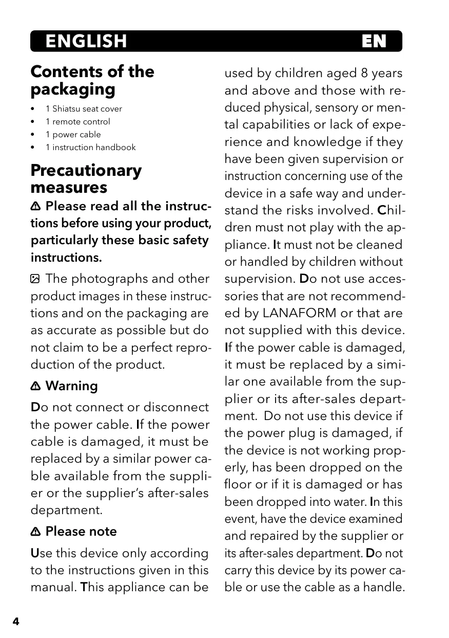 DR 1109 GE SHIATSU - Couvre siège LANAFORM - Free user manual and instructions
